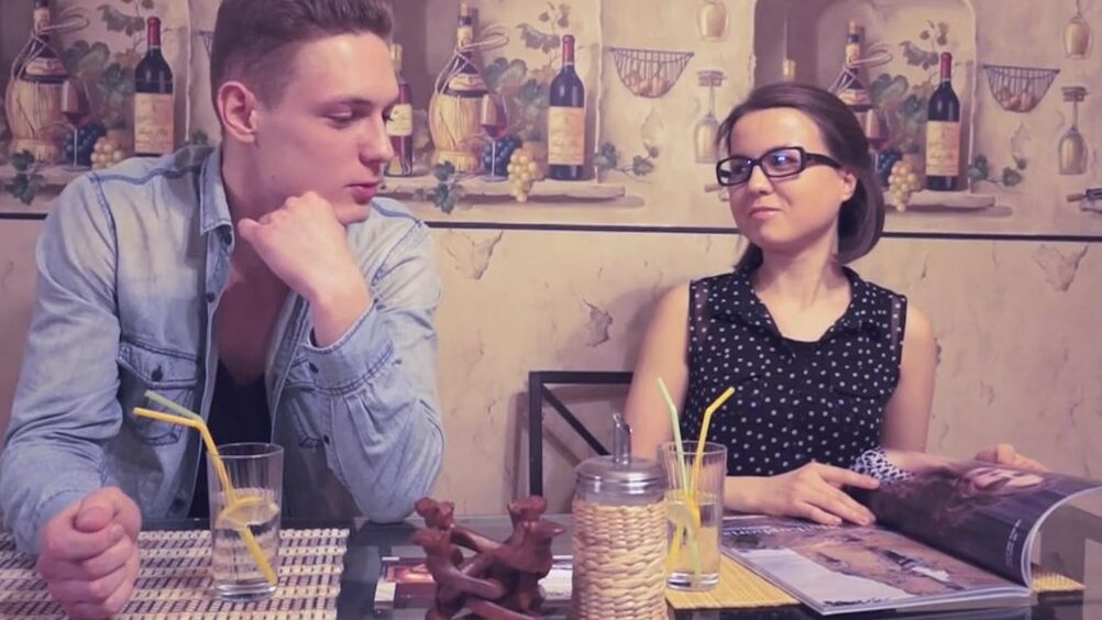 Русская брюнетка познакомилась с парнем в кафе и после милой беседы пригласила его к себе домой помочь с обоями. Конечно, сразу было понятно, что она хочет этого незнакомца развести на секс, а остальное лишь предлог. Немного поболтав о дизайне и обоях, они начинают целоваться, и парень постепенно раздевает девушку, любуясь ее маленькими сиськами. Молодая телка, опустившись на колени умело отсасывает член парня и возбуждает его как следует. После, разгоряченная брюнетка седлает его стояк и отлично двигается на пенисе, постанывая от кайфа. После такого траха она заслужено получает камшот на очки.